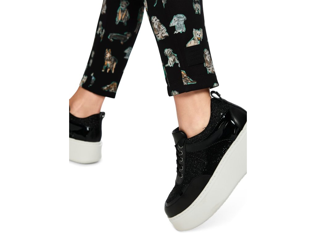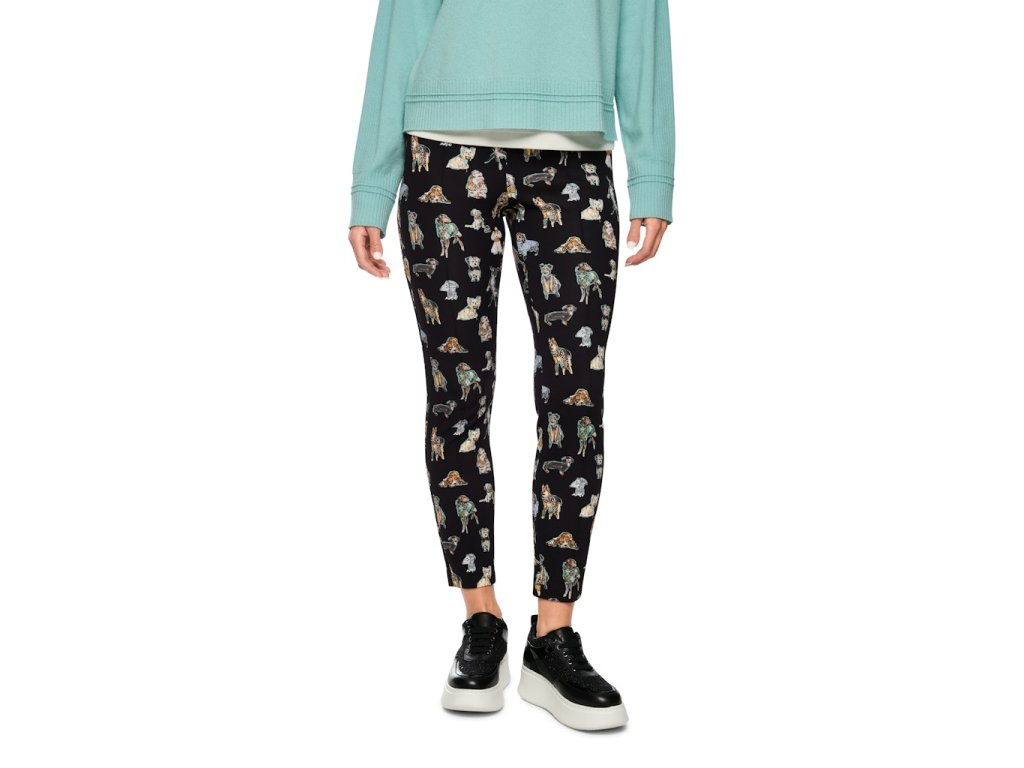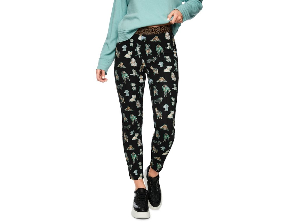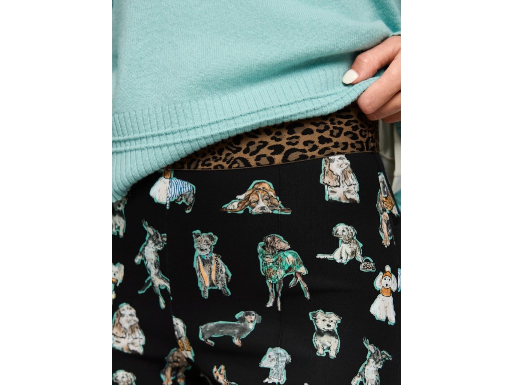 Elastické kalhoty v 7/8 délce vyrobené z pružného elastického úpletu s potiskem pejsků.