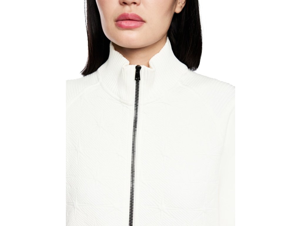 10 cm stojáček a zip u výstřihu přidává funkčnost s moderním nádechem.