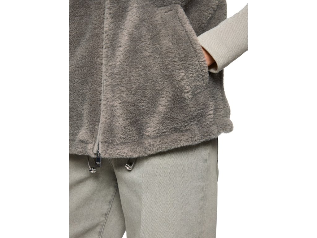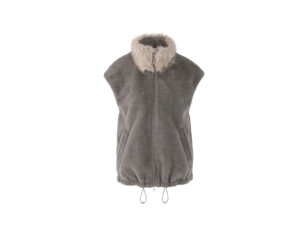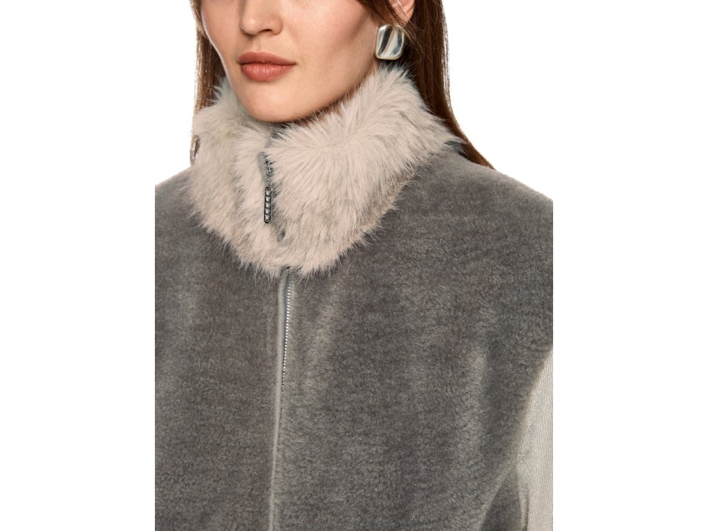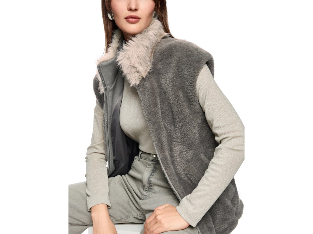 Pohodlná vesta s límcem z dlouhé umělé kožešiny poskytuje stylové teplo v chladných dnech.