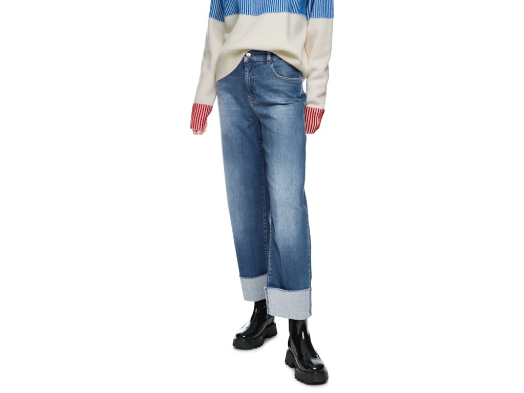 Speciální praní jim dodává moderní vzhled, zatímco široký náplet na lemu přidává stylový detail.