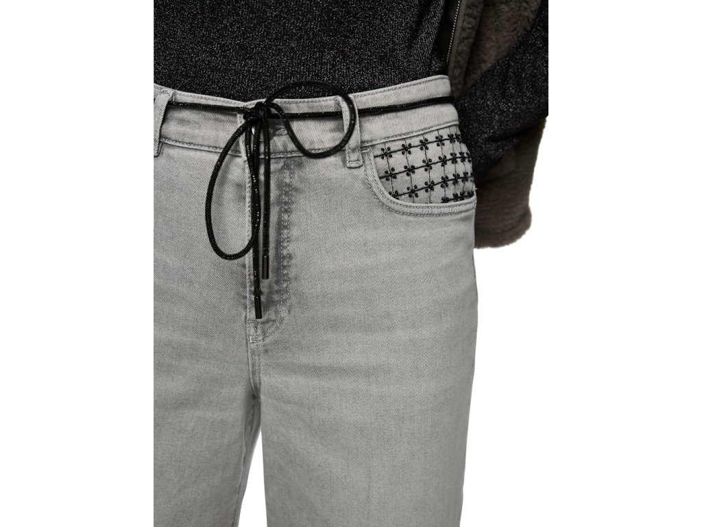 Módní široké džíny s výšivkou a páskem