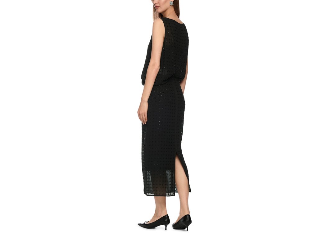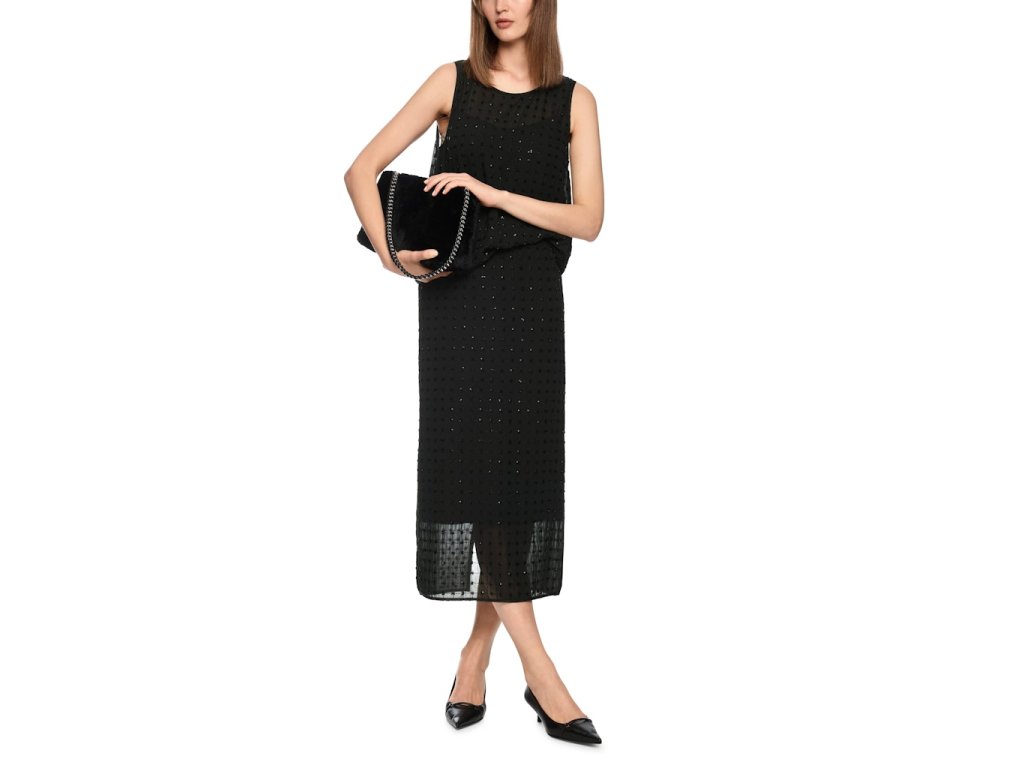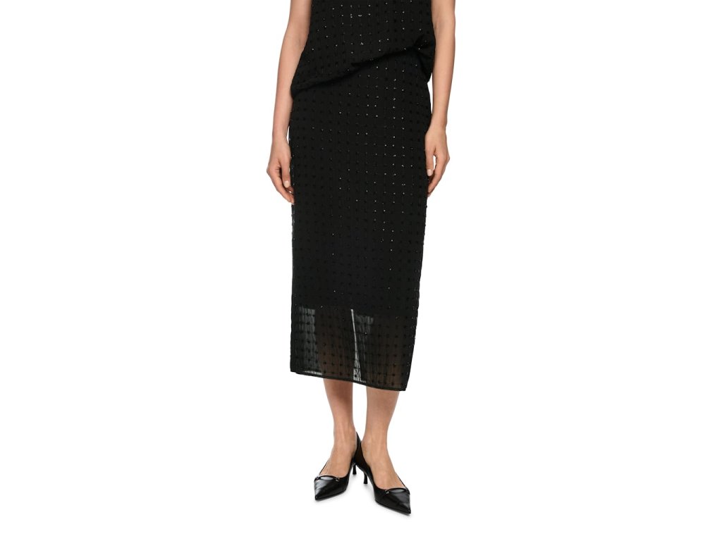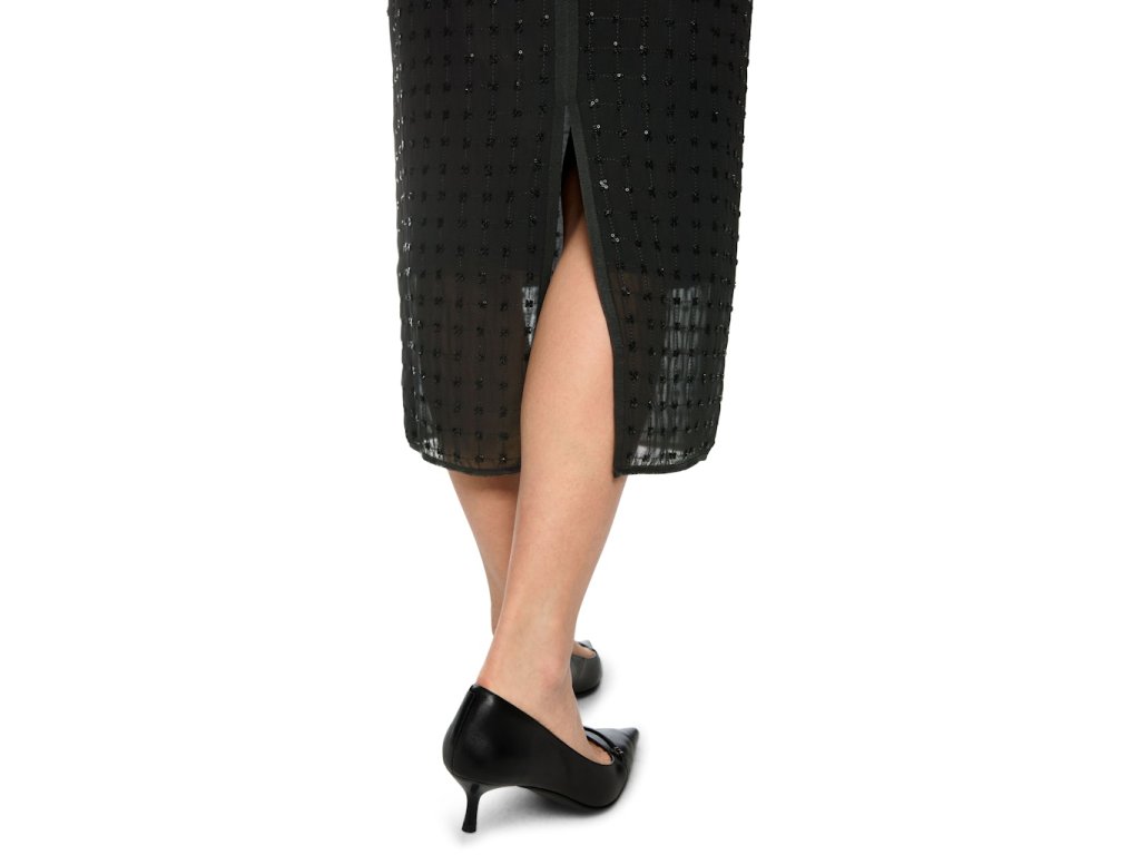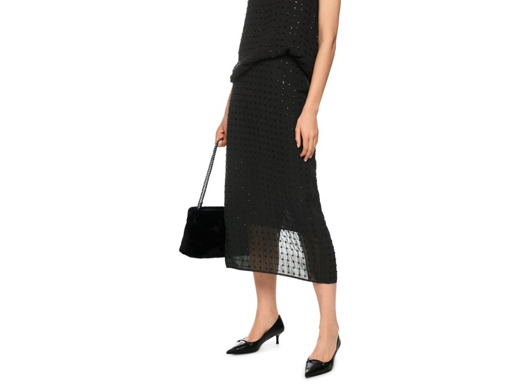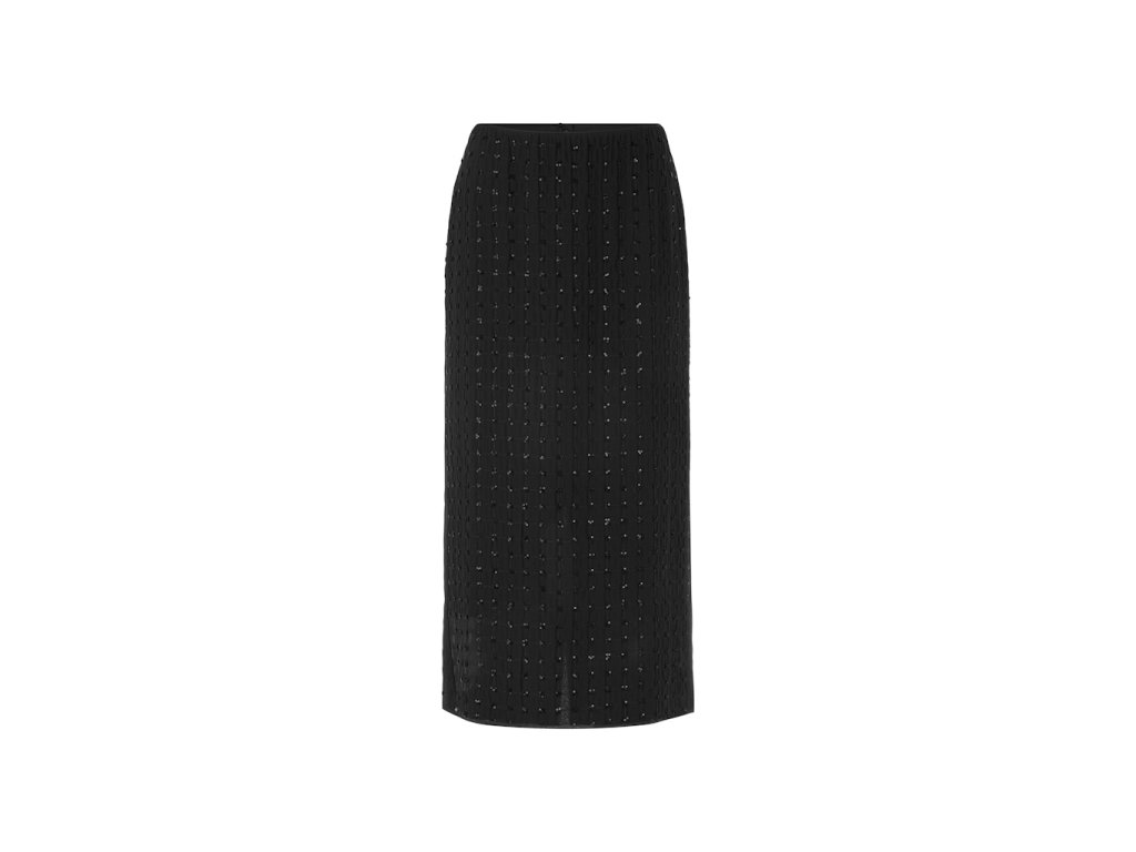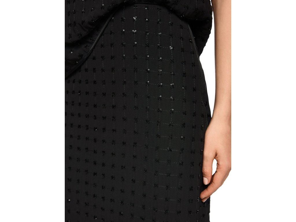 Táto elegantní sukně do poloviny lýtek z lehkého mikrovlákna má rovný střih a je vyšívaná třpytivými mini flitry.